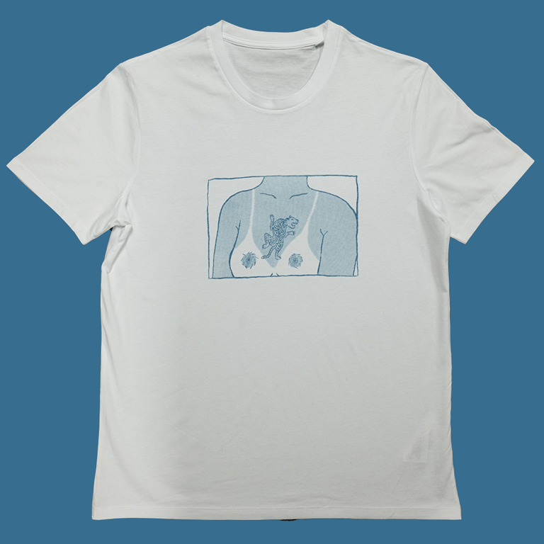 Color: White shirt with light blue print (actual colors may vary slightly due to photography and screen settings)